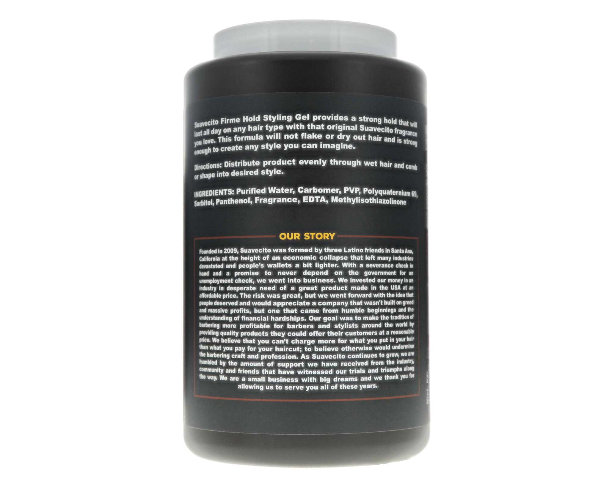 Suavecito Firme Hold Styling Gel provides a strong hold that will last all day on any hair type with that original Suavecito fragrance you love. This formula will not flake or dry out hair and is strong enough to create any style you can imagine, plus it washes out easily at the end of the day.